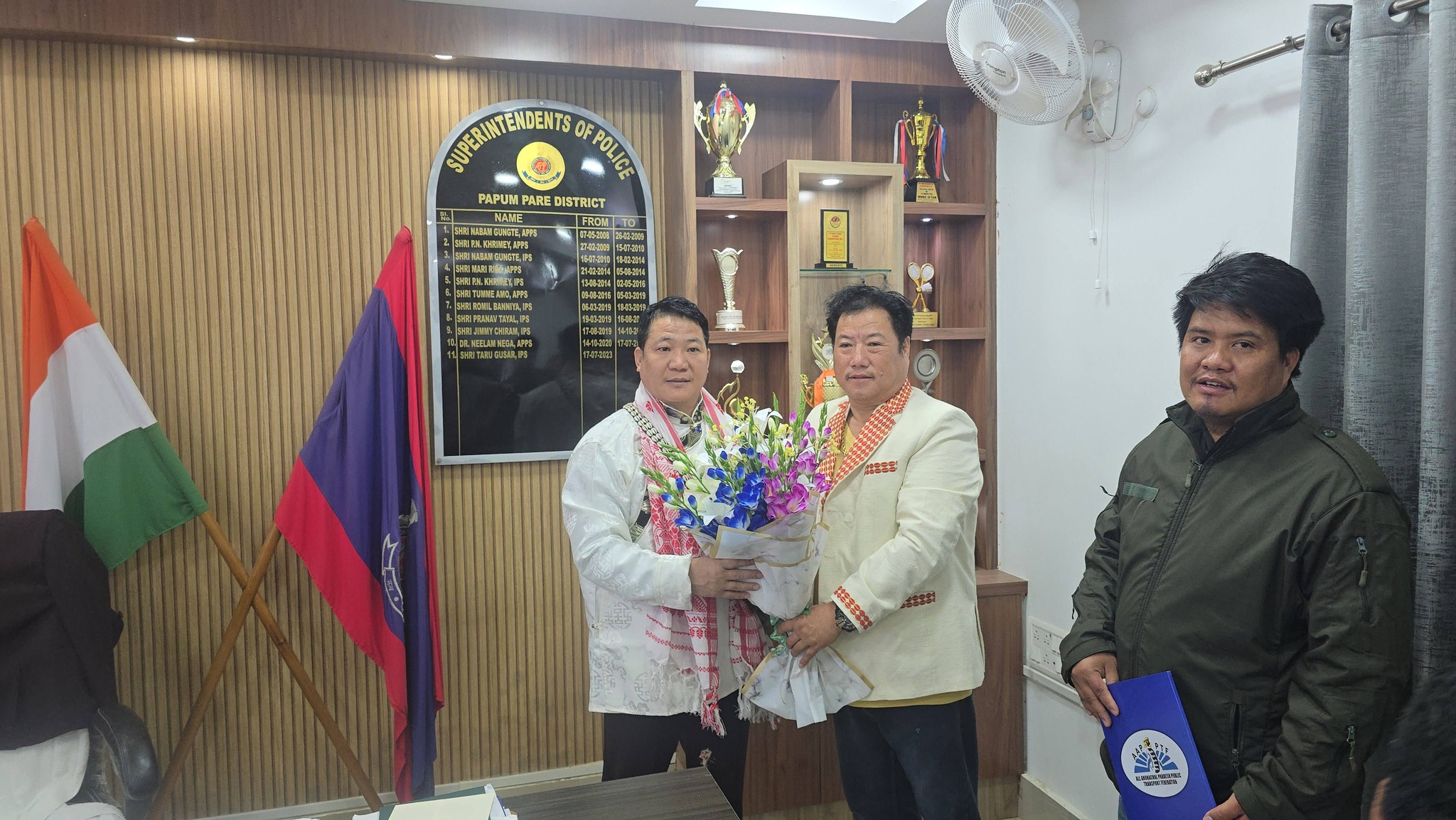 Today team from All Arunachal Pradesh Public Transport Federation (AAPPTF)Trade Union visited the Ld Superintendent of Police Papum Pare Shri Taru Gussar IPS & Shri Nyelam Nega APPS Superintendent of Police Naharlagun ICR at their Chamber & wished them a prosperous & Safe New Year 2026 , We also thanked them for keeping our Papum Pare & Twin Capital Safe for all the Citizens.Meanwhile, we also felicitated our