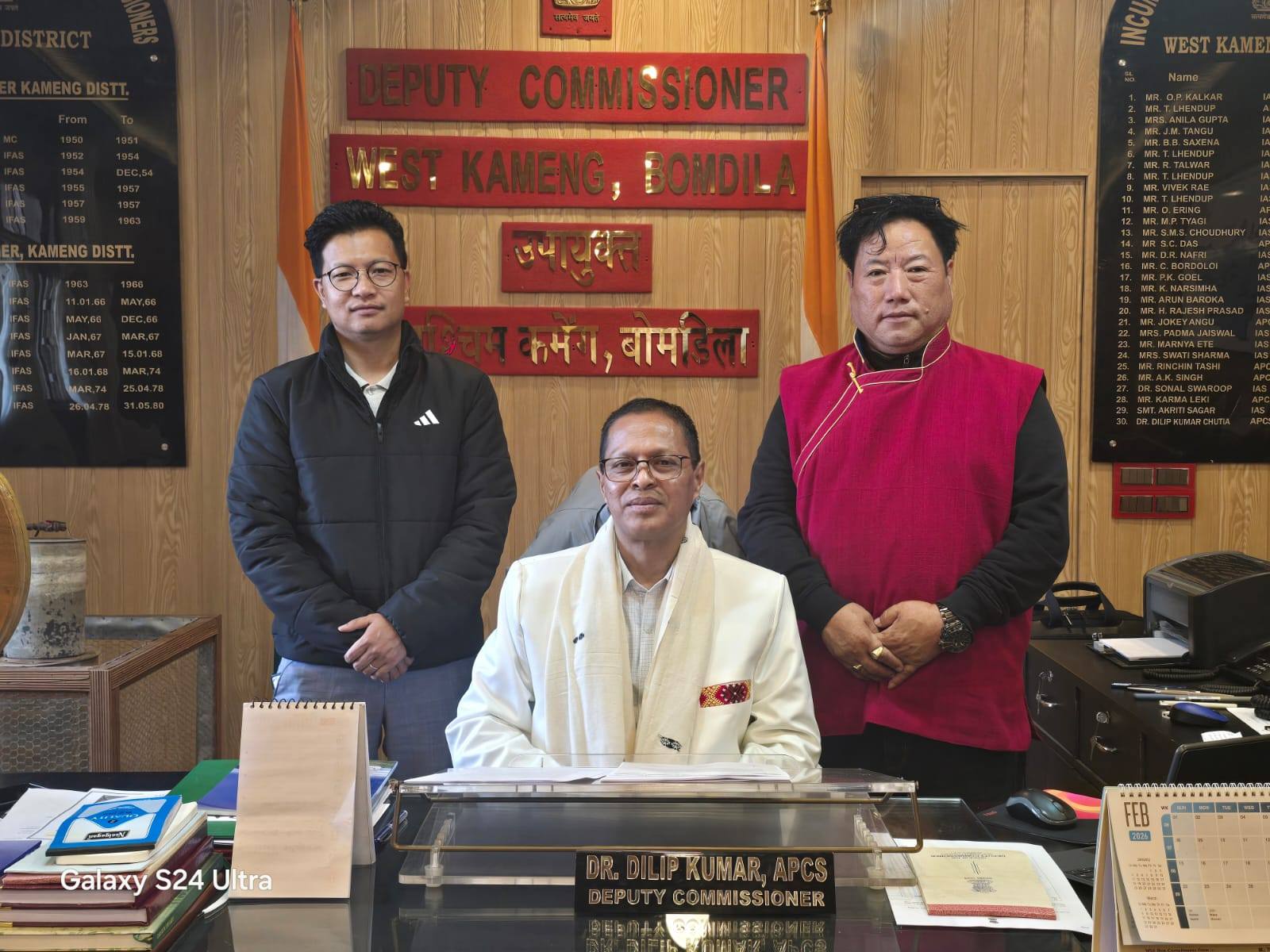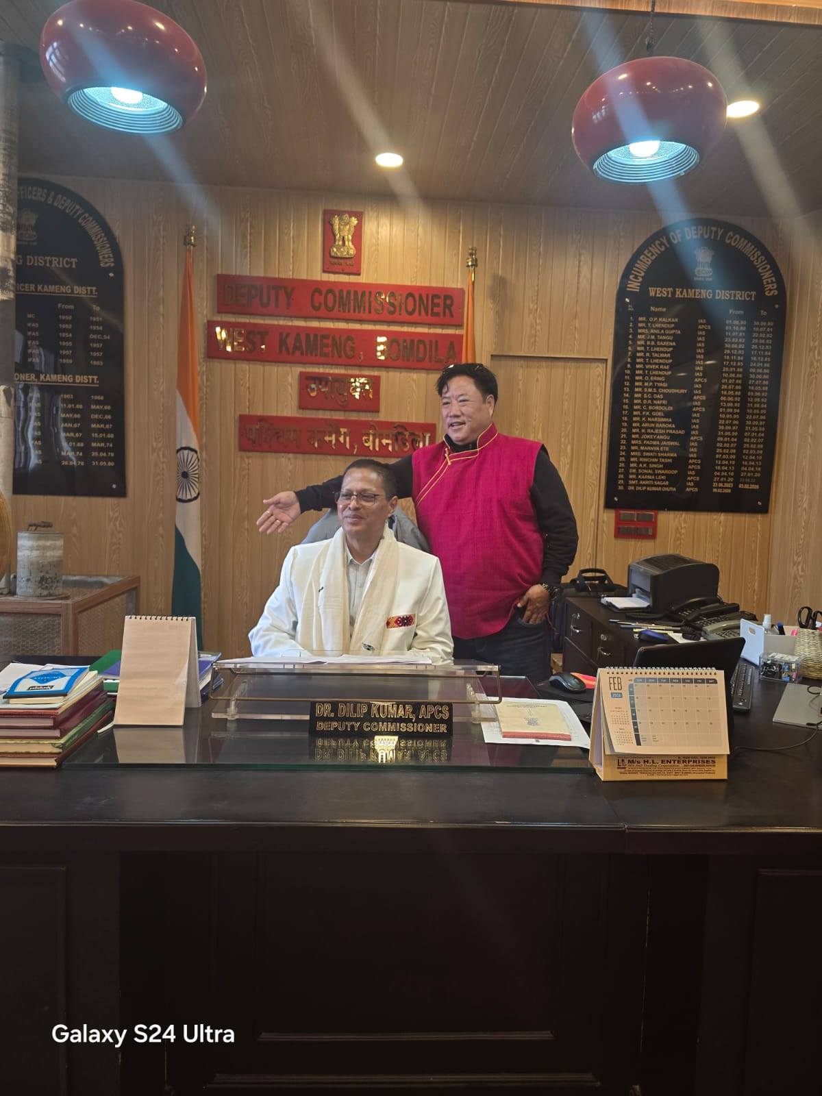 BOMDILA-: 19 Feb, On the occasion of Losar the Great festival of Buddhist Myself in Capacity as STATE PRESIDENT of All Arunachal Pradesh Public Transport Federation(AAPPTF) Trade Union along with Members of KAMENG ZONAL, WEST KAMENG UNIT AAPPTF, felicitated a very well-known & able Newly appointed Deputy Commissioner Dr DILIP KUMAR (APCS)AG