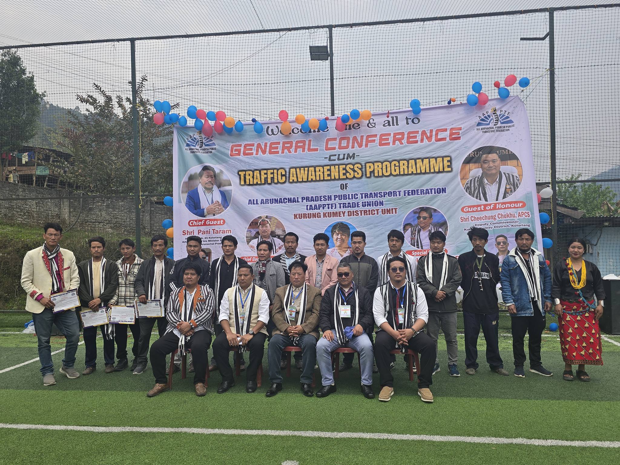 The General Conference and Traffic Awareness Program organised by the All Arunachal Pradesh Public Transport Federation (AAPPTF] at Koloriang Headquarters was completed in the presence and Cooperation of the District Administration, Police Department, AAPPTF District Units, and Owner Drivers.We extend our sincere gratitude to the Ld. Deputy Commissioner, Shri Cheechung Chukhu, and the Superintendent of Police, Shri Bamken Bassar, for their valuable presence and guidance. Their encouragement has strengthened our commitment toward improving Road Safety & Traffic Discipline, and responsible driving in our region