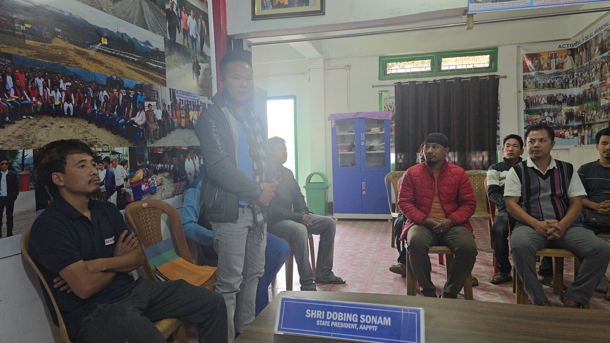 The programme was held under the leadership of Shri Dobing Sonam, State President, AAPPTF, Accompanied by Shri Kipa Saktar, Secretary General, Shri Toko Tadap, Vice President, Shri Dabo Loda, Vice President, Shri Tarh Kame, Finance Secretary, Shri Tagru Tari, Convenor, Shri Kogi Maih Gogi, Shri Arun Mosang, Shri Dayum Taje, Shri Riso Tari, Shri Krishna Rebe, Shri Gida Bida, and The Conference was also witness by Shri Tana Akan, President and Shri Tarh Takash Gen Secy Papum Pare District Unit AAPPTF.