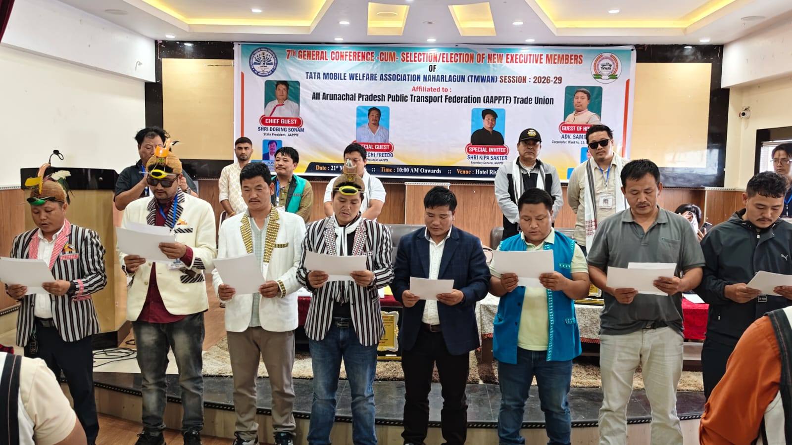Today, on 21st March 2026 at Hotel Rising Sun, Bara pani (Naharlagun), I had the honour to attend the 7th General Conference of Tata Mobile Welfare Association Naharlagun (TMWAN) as the Chief Guest in my capacity as State President of All Arunachal Pradesh Public Transport Federation (AAPPTF) Trade Union.I was accompanied by our respected team members – State Working President Shri Techi Freed, & Secretary General Shri Kipa Saktar, Vice Presidents Shri Toko Tadap and Shri Dabo Loda, along with leaders from various transport unions and associations across the Capital Complex and Papum Pare district.