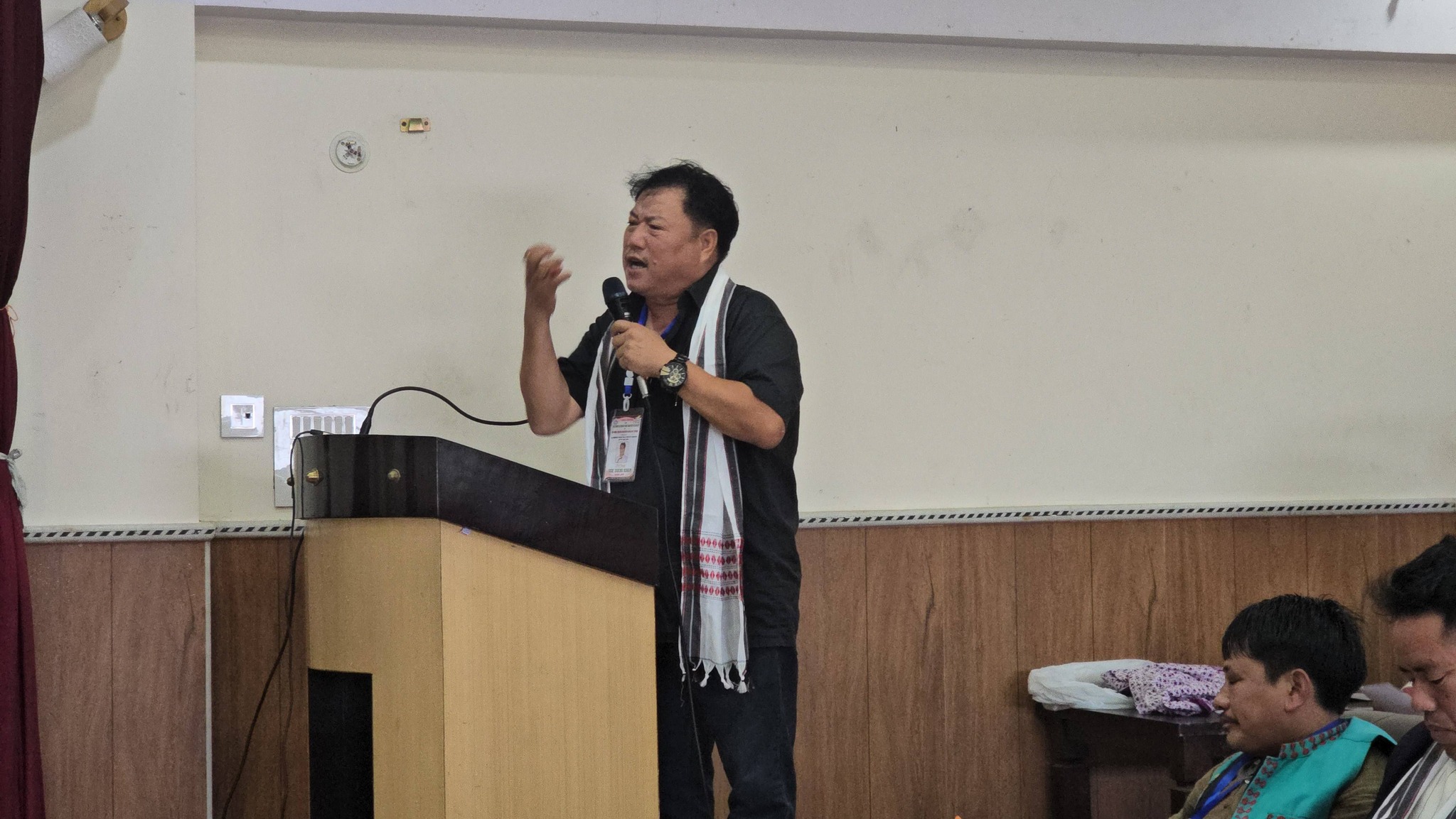 State President Shri Dobing Sonam addresing a meeting of AAPPTF, East Siang District Unit FederalUnits in the Presence of Smti. Sonalika Jiwani (IAS) Deputy Commissioner, of East Siang District