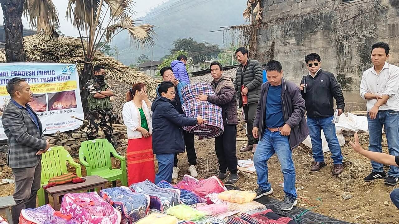 Distribution of Relief Items to the victim families of Boleng Fire Incident (Aug’ 2024) at Siang District.Items contributed by All Arunachal Pradesh Public Transport Federation (AAPPTF) Trade Union.